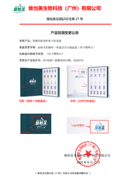 关于“养颜多肽修护冻干粉套盒”的包装变更公告